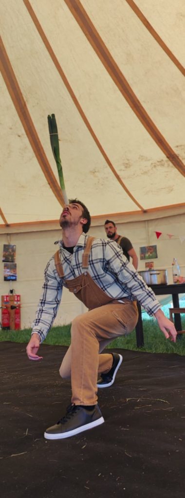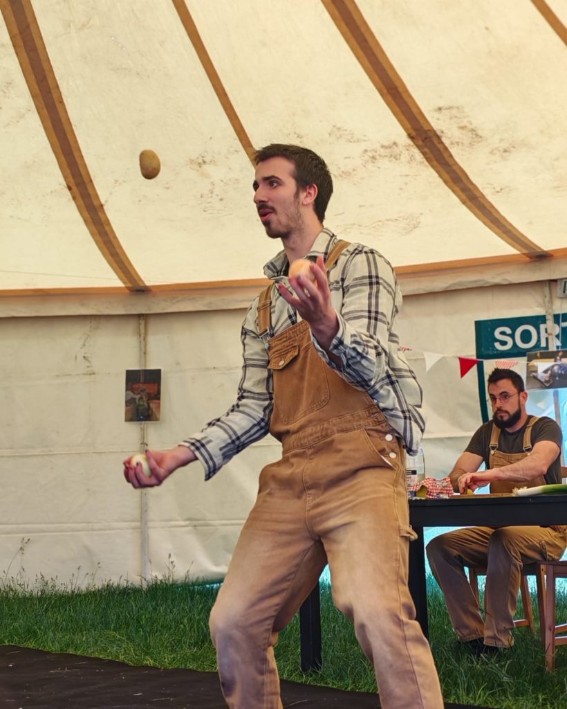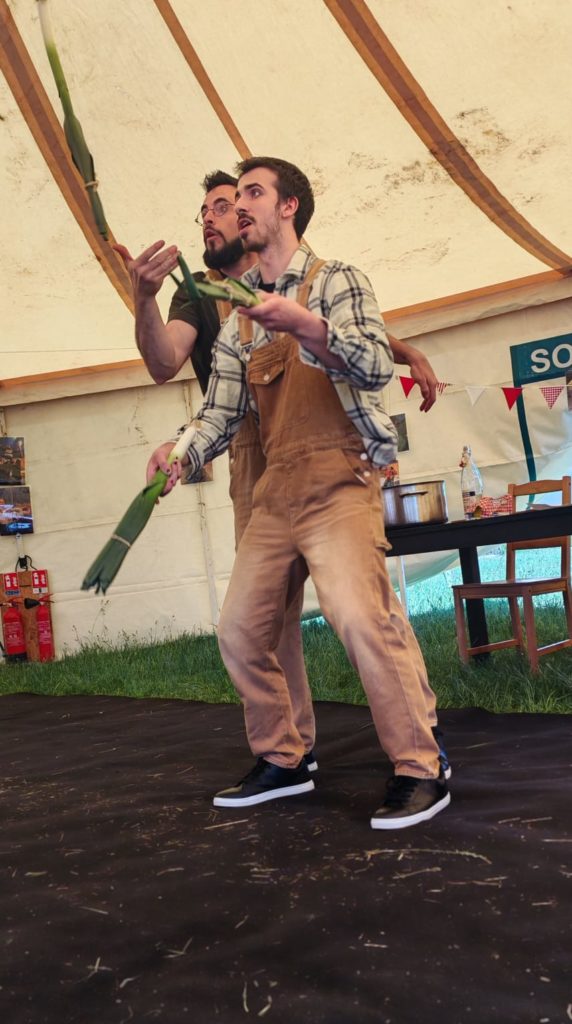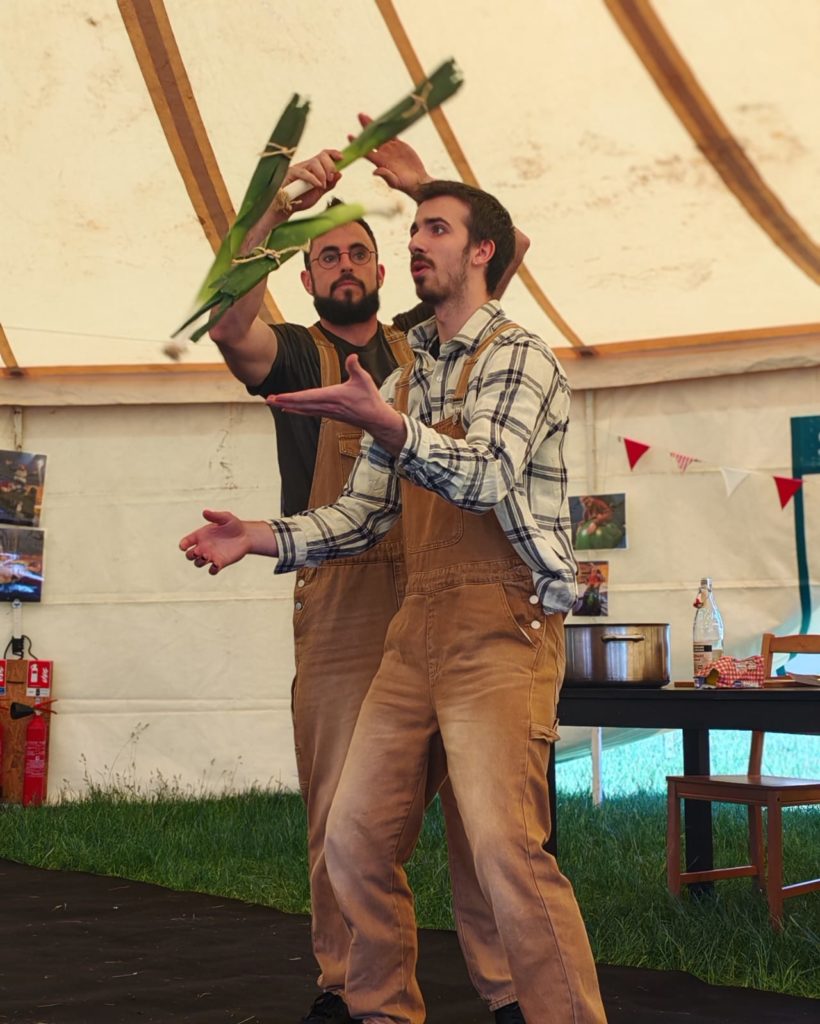 Mais à deux, c’est encore pire ! Leur tentative donne naissance à un véritable spectacle : jonglage de légumes, cascades de casseroles, portés acrobatiques…